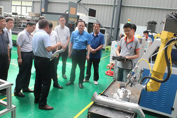 尹书记一行在公司总经理陈义兵、执行总经理熊衍军、常务副总易光纯的陪同下逐一参观了智能智造生产车间,总装车间以及研发中心。陈总向尹书记汇报了公司的经营情况、品牌战略及未来发展的思路。易总向尹书记一行详细解说了每一款激光设备的工作原理及行业应用。